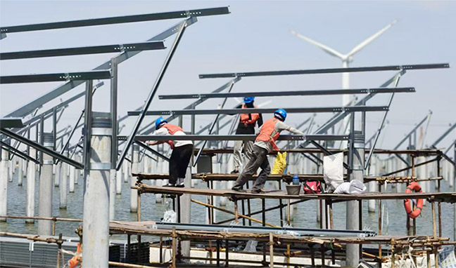 9月19日,由集團(tuán)和悅達(dá)集團(tuán)、興??毓杉瘓F(tuán)合資建設(shè)的悅海灌東鹽場150MW漁光互補(bǔ)光伏發(fā)電項(xiàng)目獲《中國日報(bào)》海外版報(bào)道!2025-09-19 -